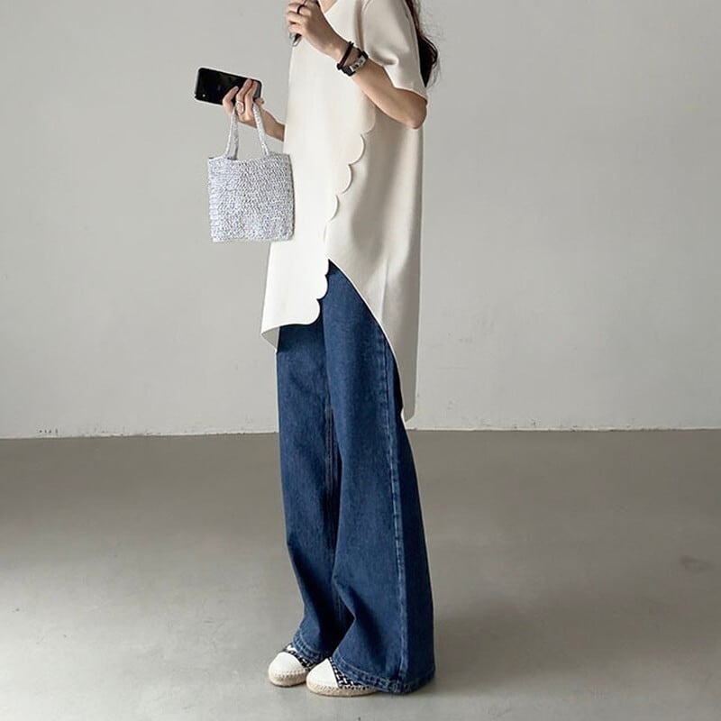 スカラップヘムオーバーサイズトップス