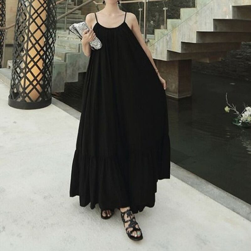 マキシ丈キャミソールワンピース。