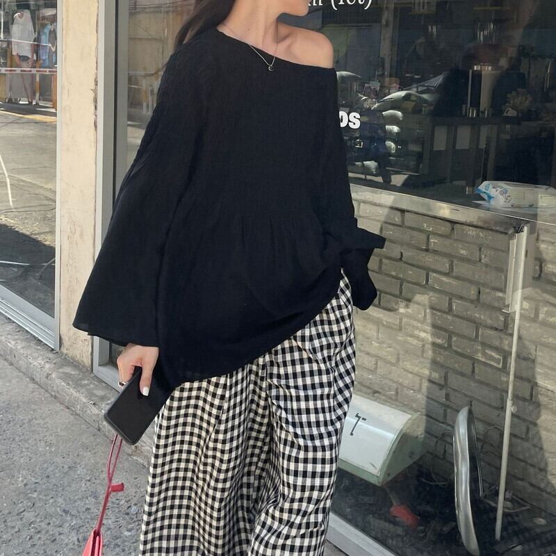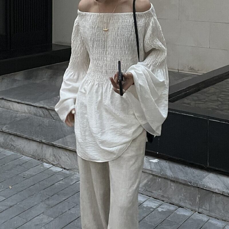 オフショルダーのデザインがデコルテを美しく魅せ、