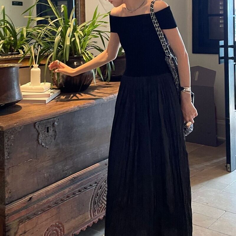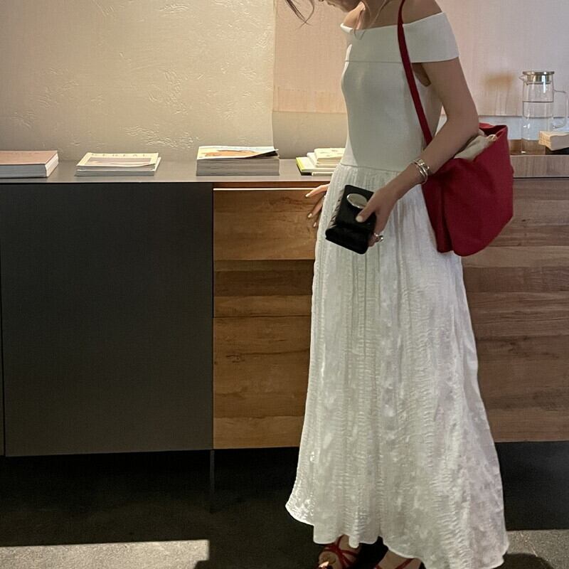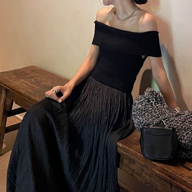 オフショル切替ロングワンピース