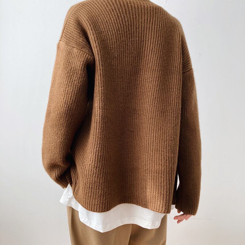 【商品詳細】 2ボタンニットカーディガン チラリと見えるインナーがオシャレポイントに。 カーディガンやアウターに 長く使えるitemです。 【サイズ】 長さ:102 バスト肩の幅:46 【カラー】 Apricot Brown Coffee