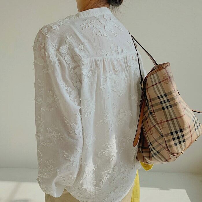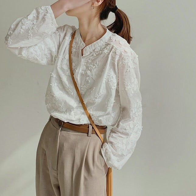 スタンドカラーで甘さもおさえられデイリーコーデにも◎
