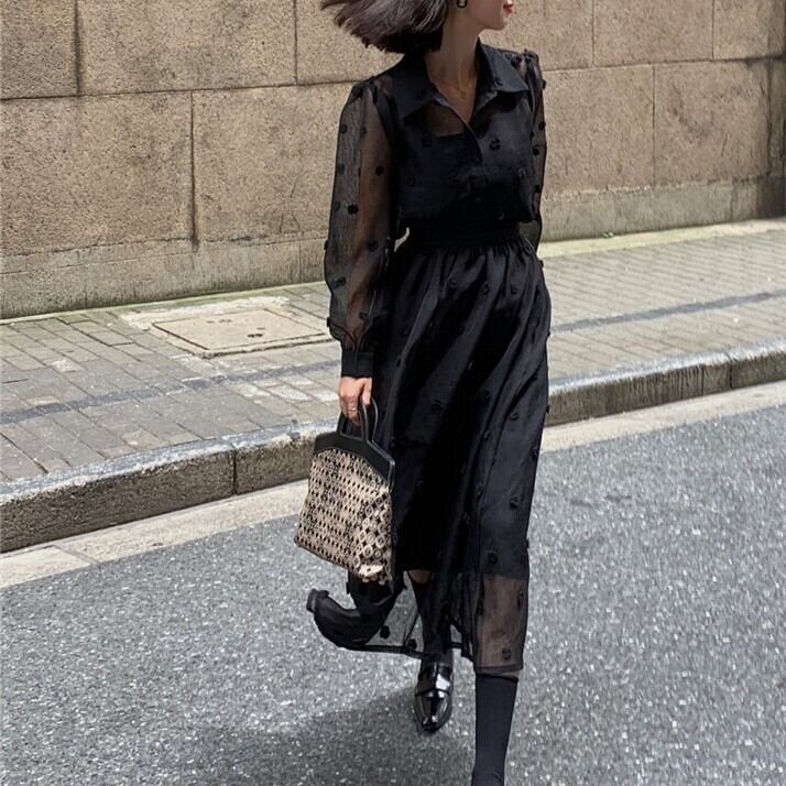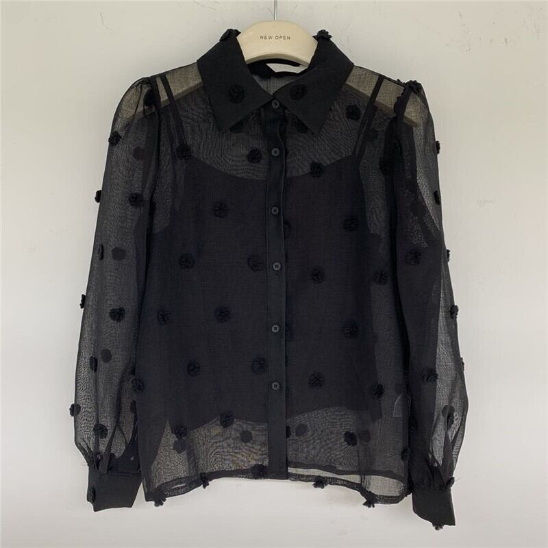 ドットの透け感が可愛いシアーブラウス!