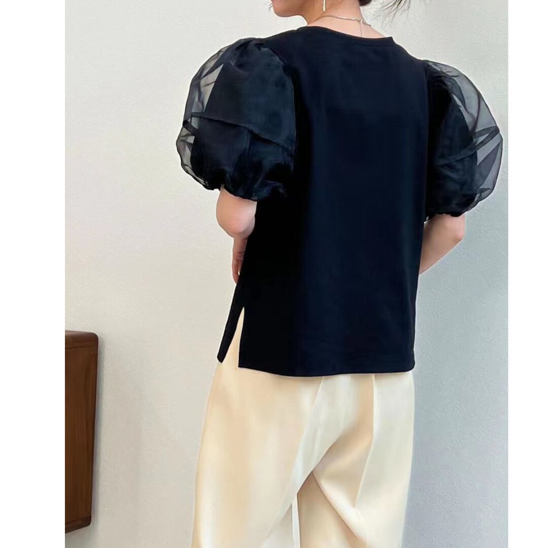 袖のフワッとしたシルエットが、上半身にボリューム感を与え、