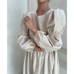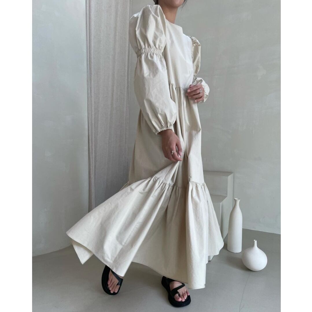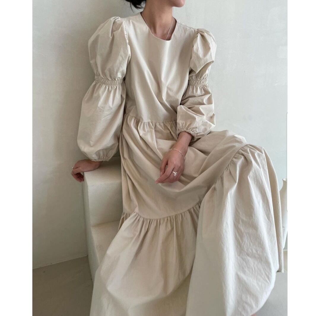 フレンチシックプリーツパフスリーブロングワンピース 10499