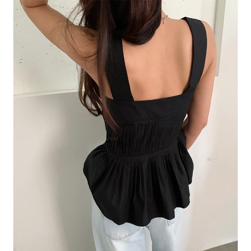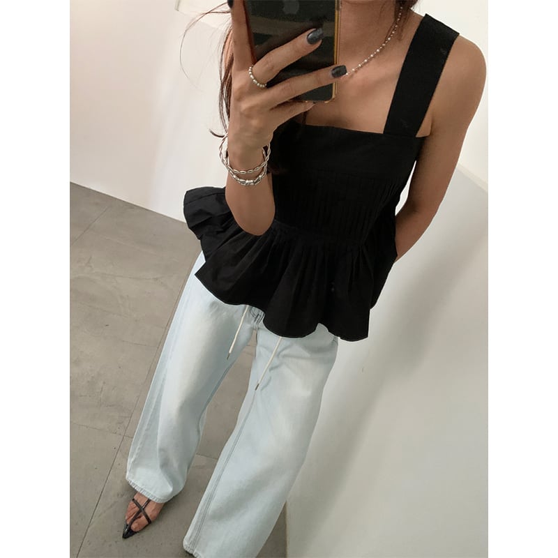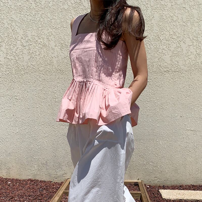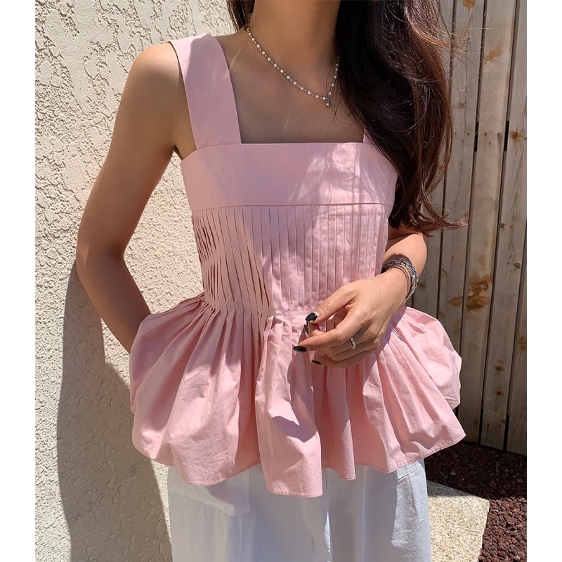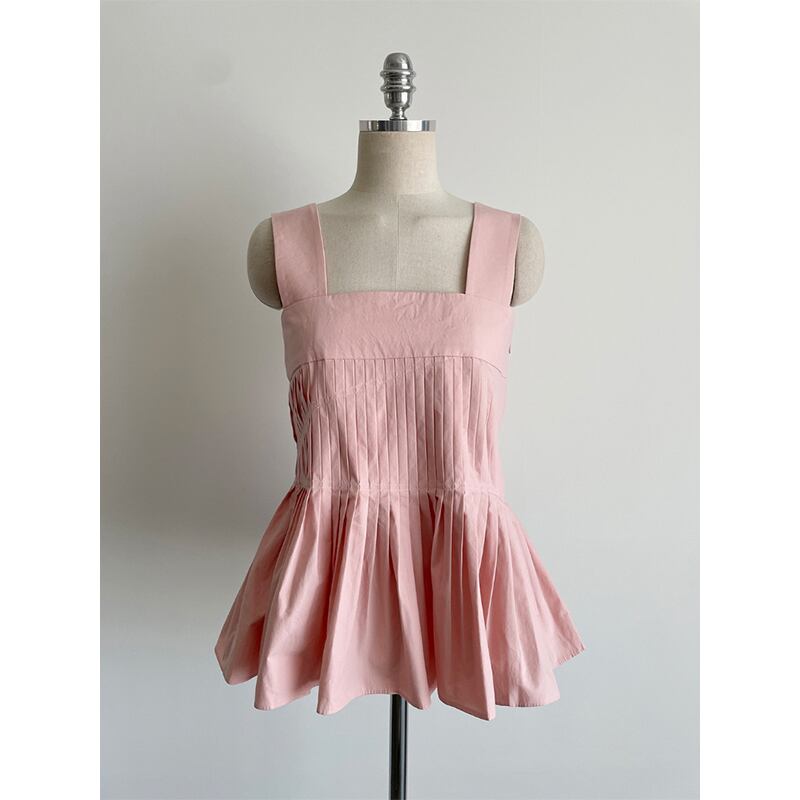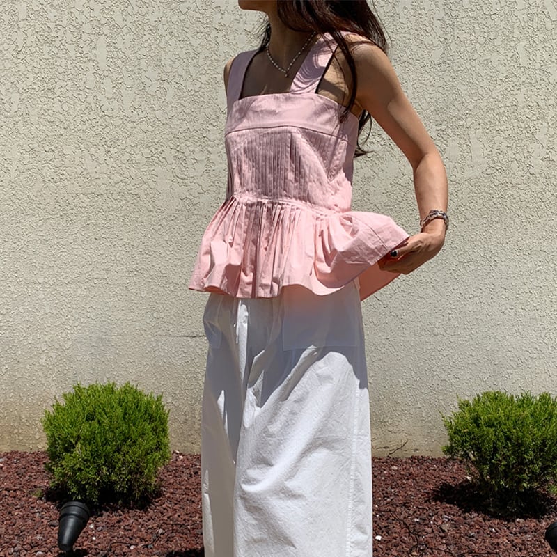 裾はプリーツデザインでウエスト周りをふんわりさせ、