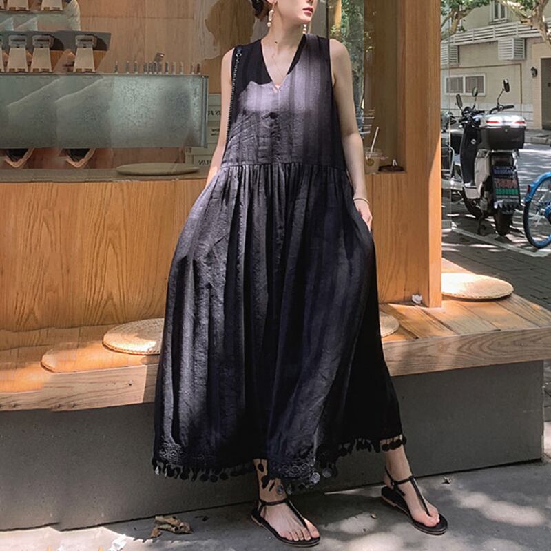 Vネック裾デザインロングワンピース 10839