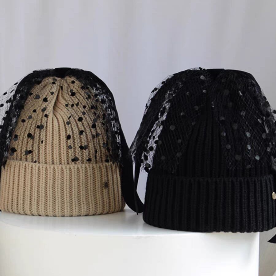 ドットチュールリボンニット帽