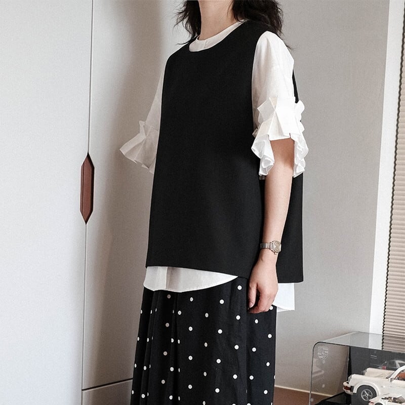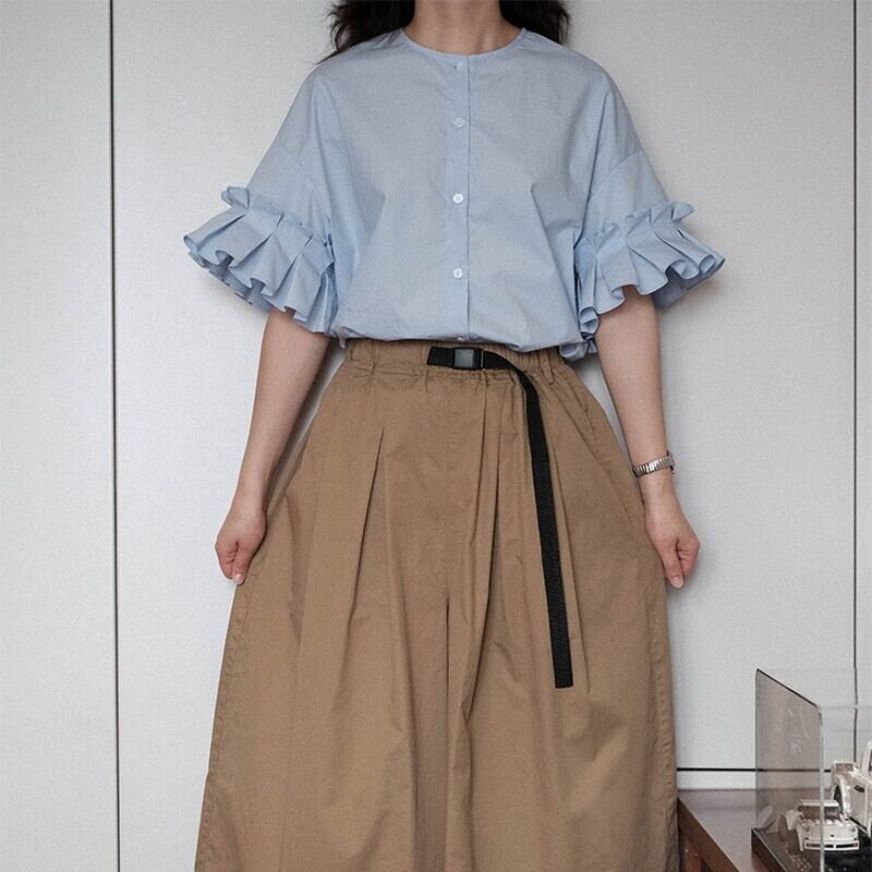 フレアスリーブが気になる二の腕をさりげなくカバーしてくれるので、